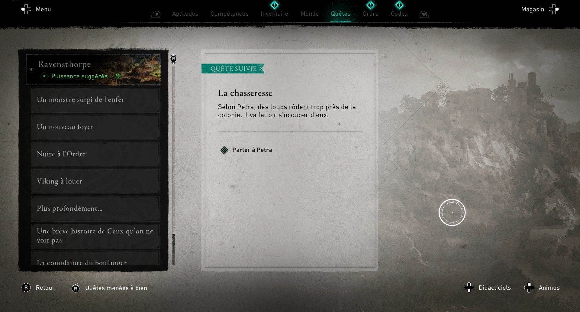 Après avoir bâti la cabane du chasseur après que votre camp soit passé au niveau 3, vous débloquerez les quêtes de Petra. Dirigez-vous dans la cabane pour commencer la première de cette série de quêtes : La chasseresse.