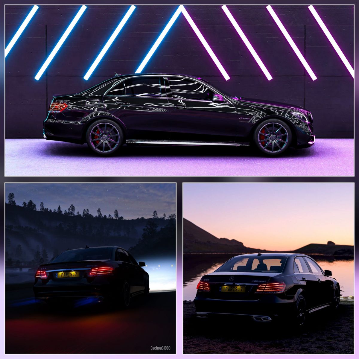 ⭐ Mercedes-AMG E63S – la classe et la puissance à l’état pur, entre néons et coucher de soleil.