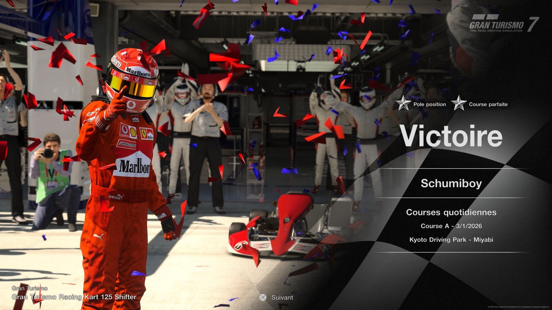 Hier se disputait une course quotidienne en karting sur le circuit de Kyoto Driving Park – Miyabi. Il n'y a pas de récit de ma course.