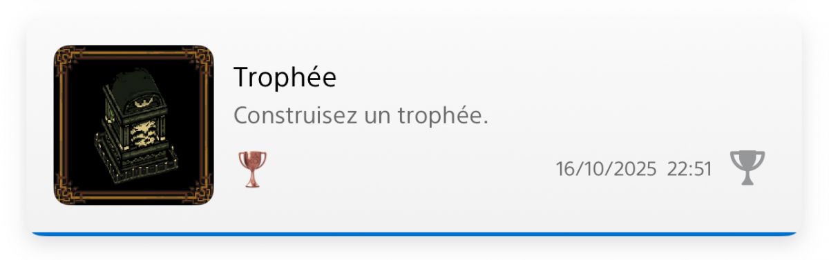 Dès que le bâtiment est construit, alors vous débloquerez le trophée « Trophée ».