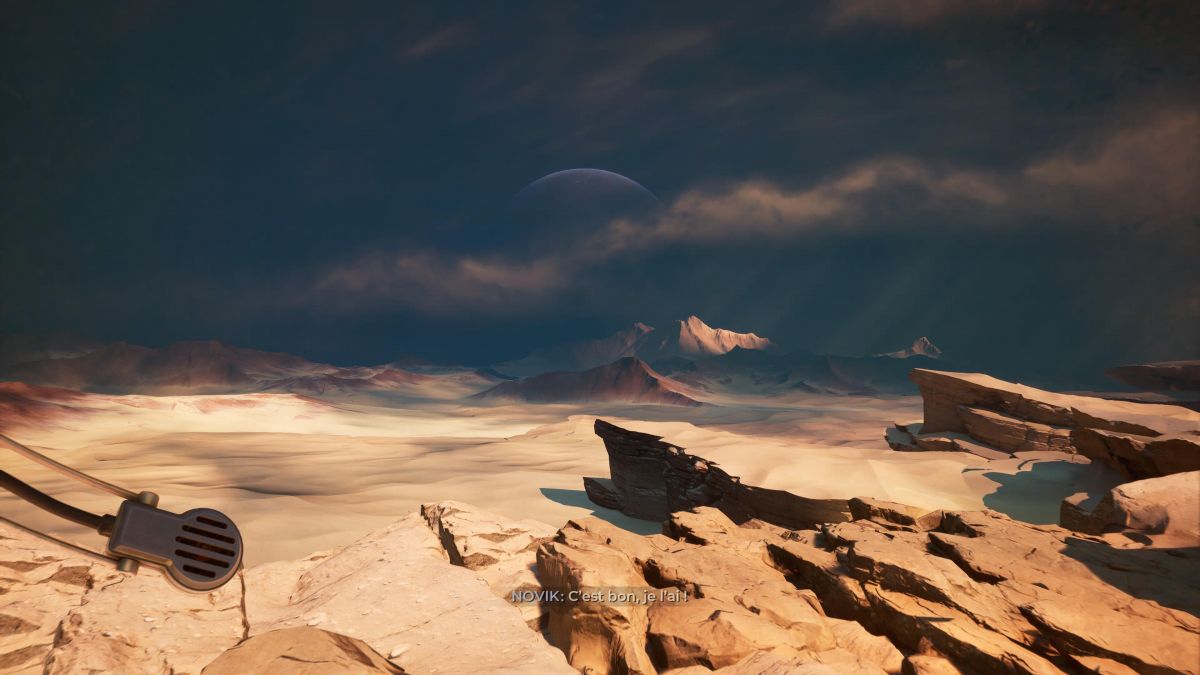 The invincible propose des graphismes sympa, de superbes paysages. Stable dans le framerate je n’ai pas rencontré de problèmes, hormis lors d’une phase en rover qui présentait des saut d’images en vue extérieure. Le problème n’est pas présent en vue intérieure mais un bug audio le remplace.