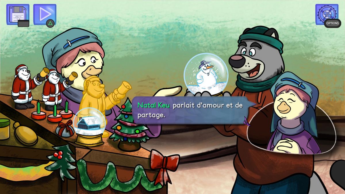 Sans en dévoiler trop, voici dans les grandes lignes l’histoire de ce Visual Novel. On retrouve les personnages habituels et cette histoire va principalement tourner autour de Graff et son ami Ott. C’est la période de la Natal Sankeu, l’équivalent de Noël dans notre univers. Mais contrairement au nôtre, c’est une fête égoïste et individualiste où vous devez vous faire à vous même le plus beau cadeau possible en trouvant un travail spécialement pour l’occasion. C’est d’ailleurs autour cette mission que Graff, Ott, et leurs familles vont traverser cette célébration. Vos rencontres et vos choix détermineront la conclusion de votre aventure …