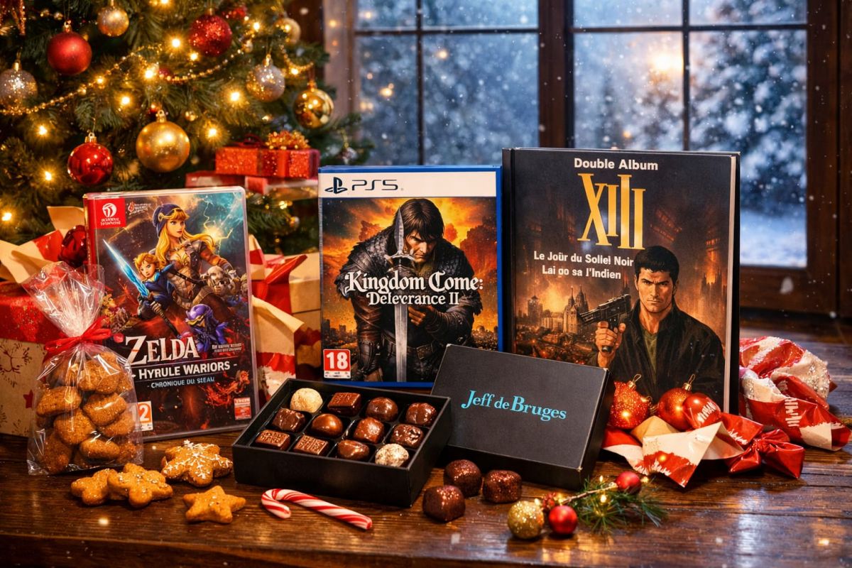 Et parce qu’un Noël parfait passe aussi par la gourmandise : petits pains d’épices avec miel fait paR un apiculteur local et une boîte de chocolats Jeff de Bruges pour accompagner les longues sessions de jeu.