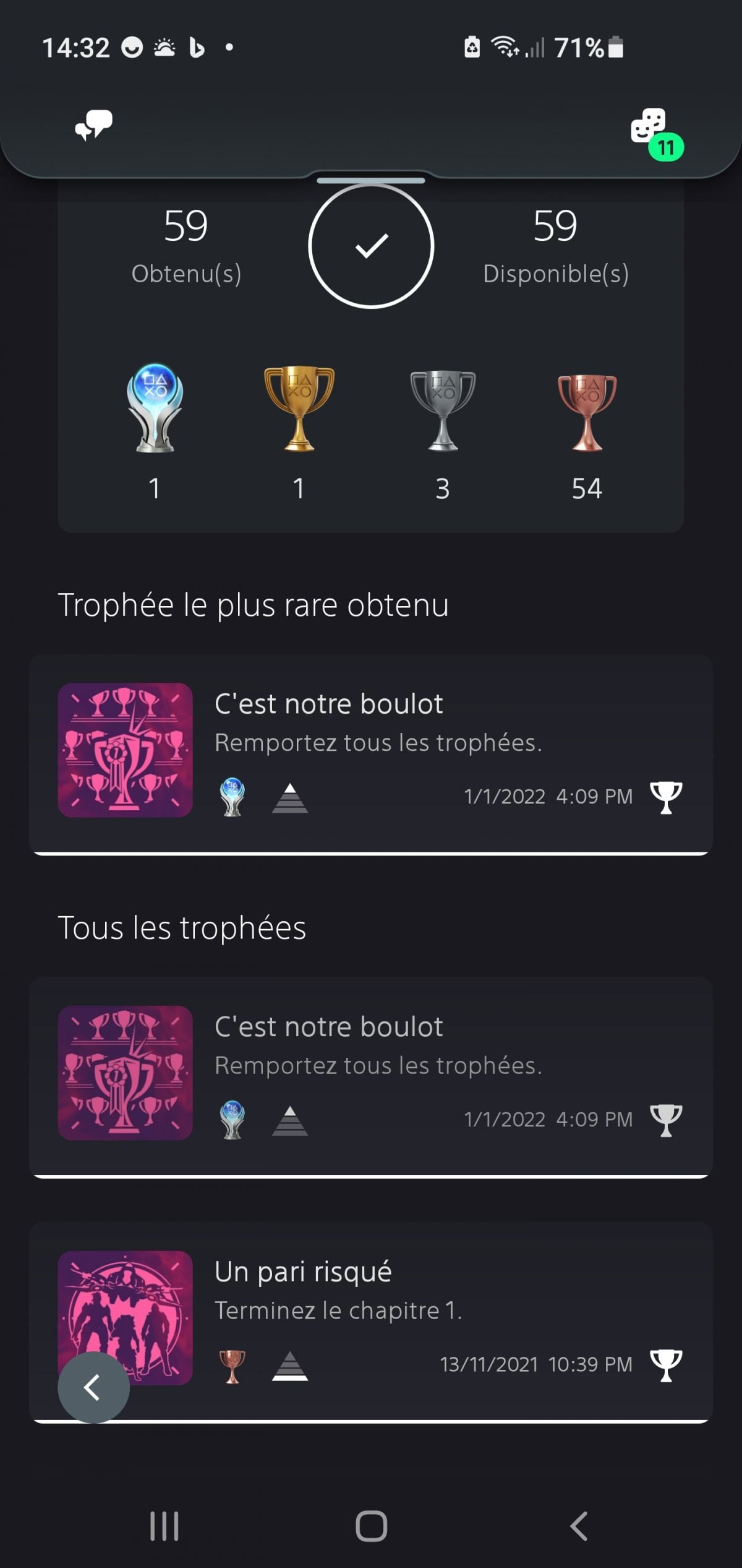J'ai terminé l'année avec 2 platines, FC6 et Ratchet...bon j'avais plus que 2ou3 trophées sur chaque en attente...j'ai juste voulu démarrer 2022 à jour sur mes jeux lol.