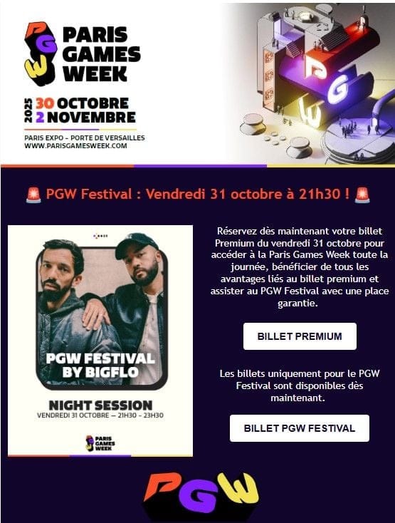 Pour ceux qui seront à la PGW le vendredi (31/10) la journée s’achèvera avec un concert de Bigflo et Oli.