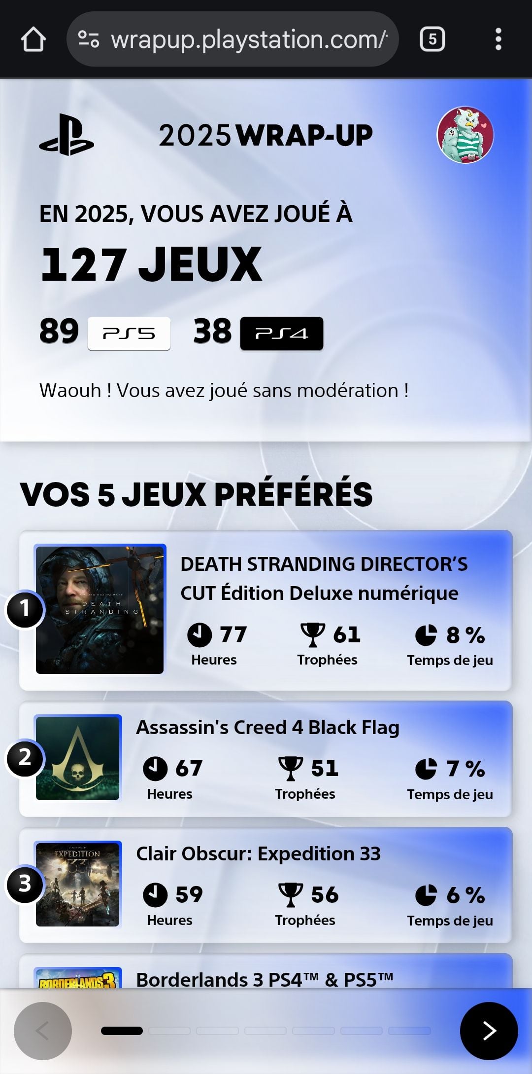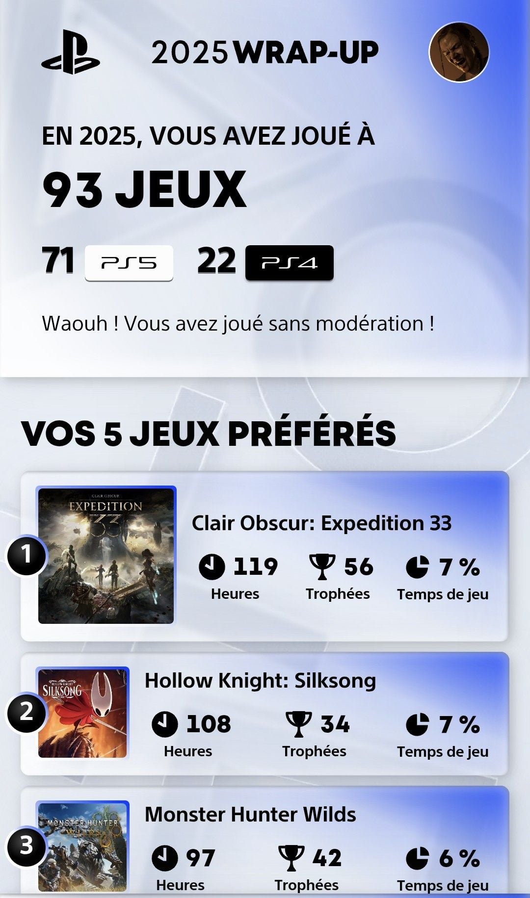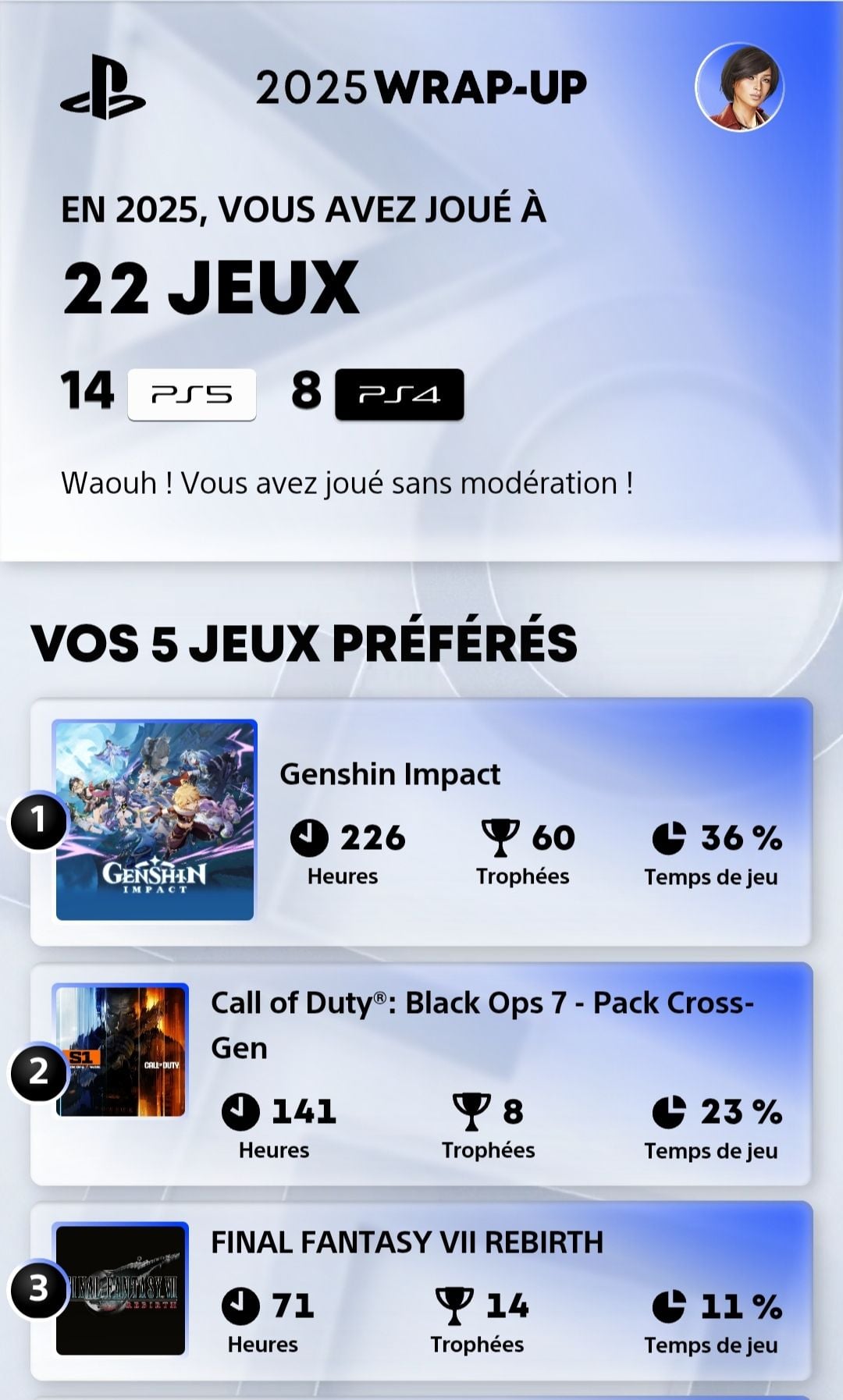 Depuis quelques jours vous avez accès à votre résumé de l'année sur PlayStation.