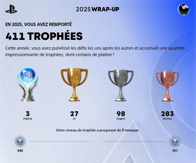 Seulement 3 platines, c'est bien moins que mon année 2024 qui avait été l'une des plus fructueuse, mais 9 niveaux de pris, c'est pas mal déjà