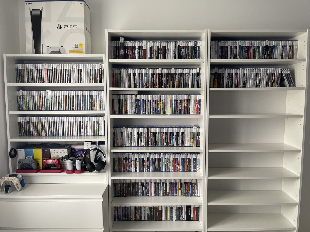 J’ai choisi la version avec disque, parce que je suis attaché aux jeux physiques, à la boîte bien précieusement rangée, au plaisir de pouvoir les prêter aux copains, mais aussi parce que j’avais l’envie de faire le fullset. Je ne sais pas dire ce qui m’a motivé à tenter de le réaliser. Je pense qu’au fond de moi, je me disais déjà que c’était peut-être la dernière console dans laquelle je pourrais réellement m’investir en tant que hardcore gamer, avant de basculer malgré moi dans la catégorie des casual gamers. J’achète donc les jeux au gré des sorties et de mes envies. Après 5 ans, la console a récémment accueilli son 1600ème jeu physique (mais il y en a possiblement autour des 1700 en réalité, obtenir la confirmation de certaines releases en Asie n’est pas forcément aisée). Pour ma part, j’en suis à 596 jeux et je suis plutôt fier de mon corner PS5 dans ma gaming room.