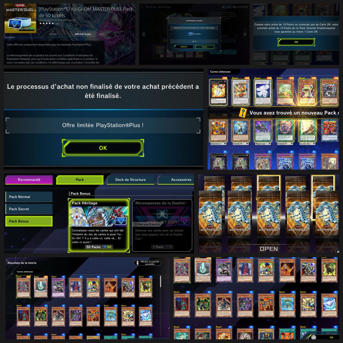 Yu Gi Ho Masterduel ce coup çi a été validé il ouvre la danse ( deux fois sur 4 il ne valide pas et annonce que le pack est incompatible avec le précedent , mais lorsque cela fonctionne 50 packs héritage bonus ça te refait )