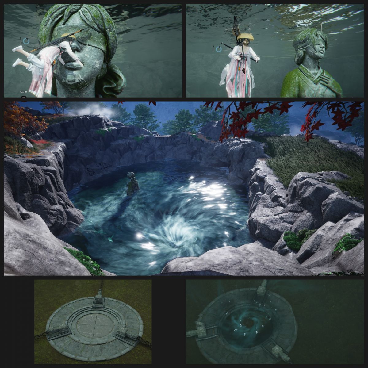 Je plonges alors dans le lac que surveillait l’oncle et y trouve un nouveau coffre mais aussi une statue gigantesque et des mécanismes reliés à des chaines