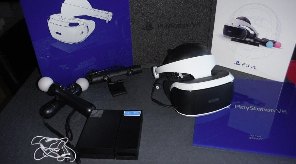 Après avoir cru à une blague, le déballage fini de m'achever, le colis contient un casque VR + 2 manettes PS Move + 1 caméra, le tout calé dans des bloc thermoformées