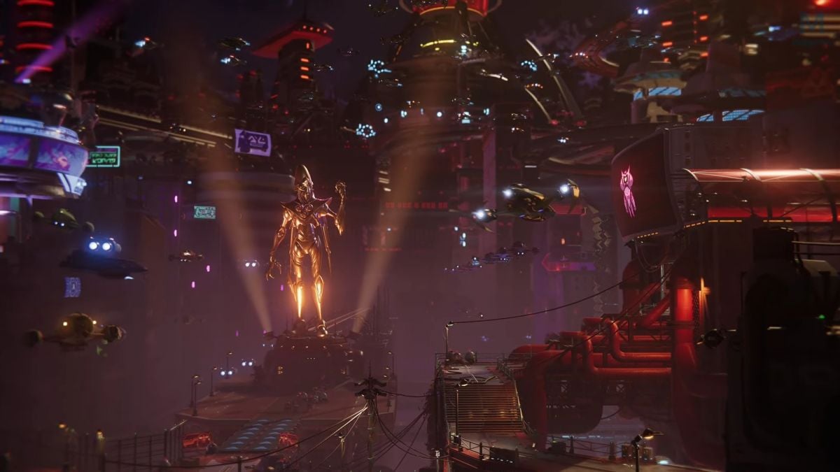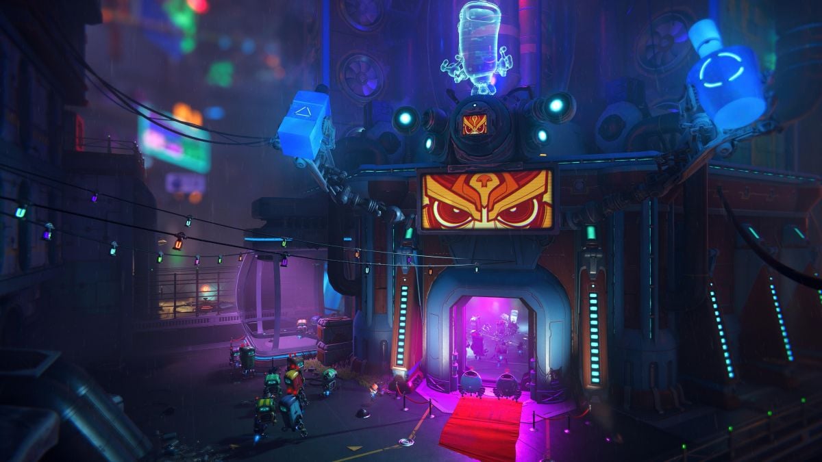 Comme Ratchet, vous aussi venez visiter le centre-ville de Nefarious City et laissez vous charmer par ses couleurs chatoyantes, son ambiance délicieusement rétro-futuriste à base de hublots et de néons, ainsi que sa légendaire promenade d'arbustes holographiques idéale pour satisfaire les envies de vos cani-robots !