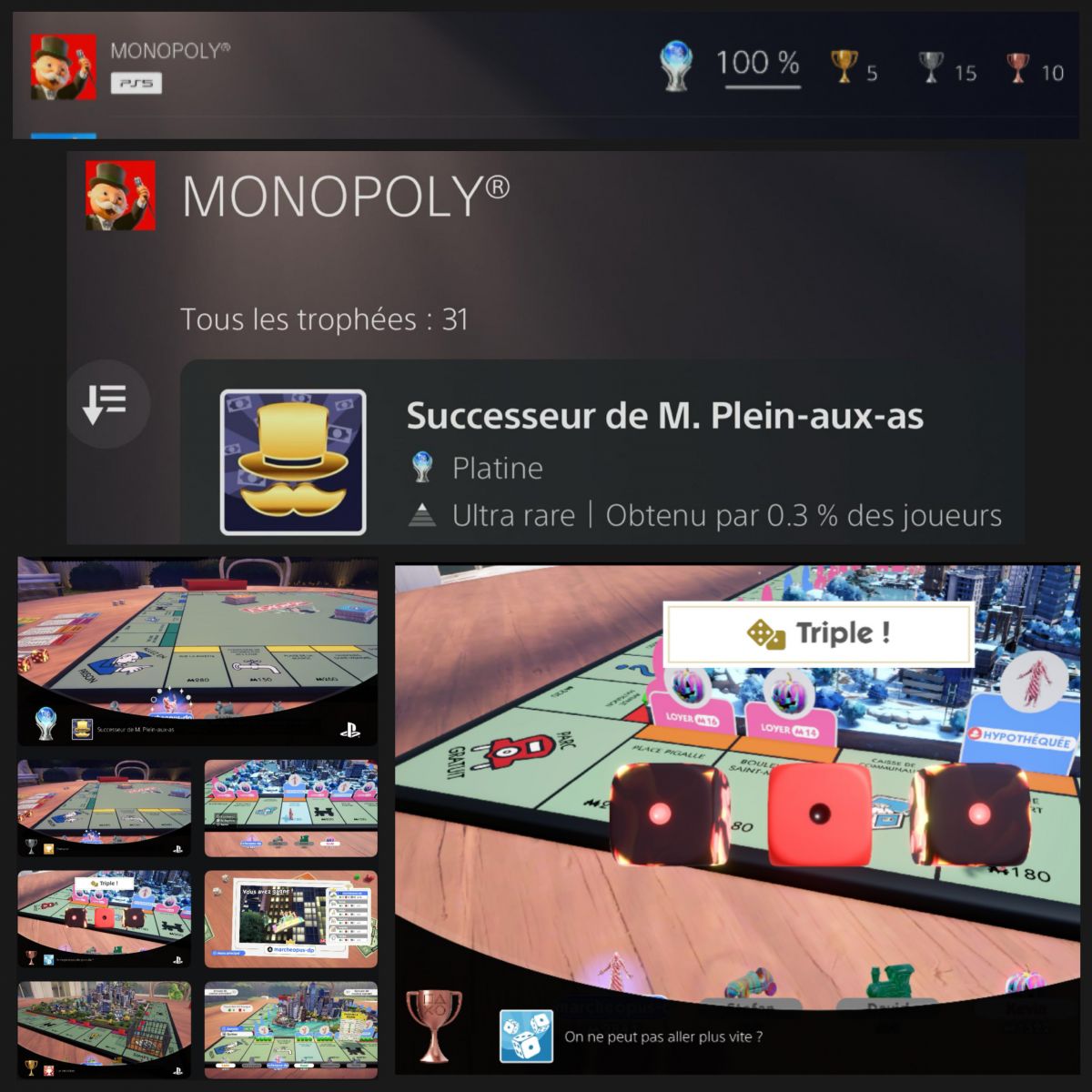Ce Monopoly 2024 était amélioré je l’avoues par rapport au précédent que j’avais joué chez Ubi et qui n’avait pas de platine