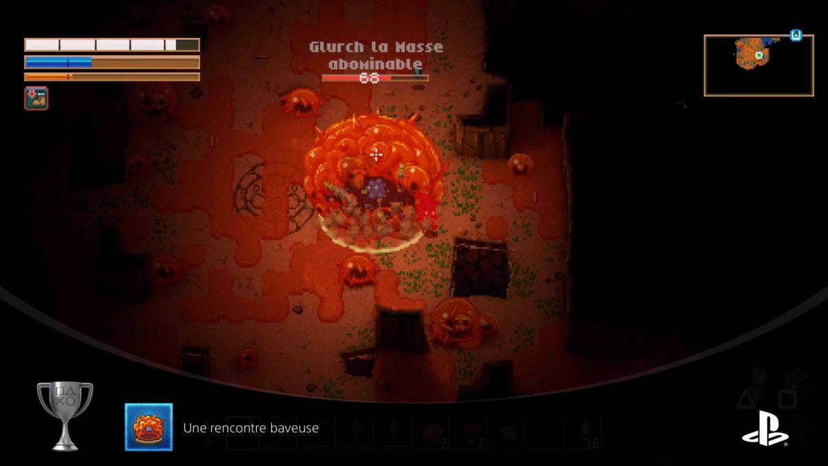 le second boss que vous croiserez ça sera au niveau de la zone où vous êtes ralenti rougeâtre tu es une grosse bestiole mais comme elle fait le tour il faudra tomber sur elle ou l'attendre le mieux c'est d'avoir un bâton pour l'attaquer