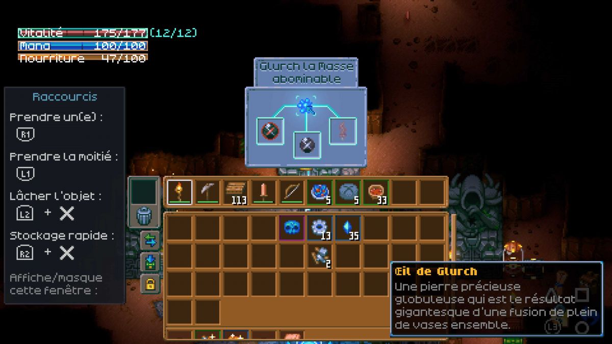 Battre le boss Glurch La Masse Abdominale pour obtenir son œil pour le placer dans la stèle du boss juste à côté du noyau, à l'endroit où vous apparaissez ca permettra de déverrouiller le GPS