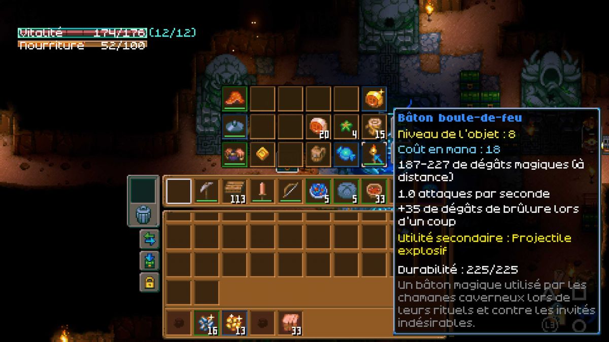 Craft l'armure dorée avec l'épée et l'arc et surtout cuisiner alors vous pouvez utiliser deux champignons pour craft un plat en grande quantité (ressources très courant), sans oublier de faire une centaine de Ponts et augmenter l'inventaire