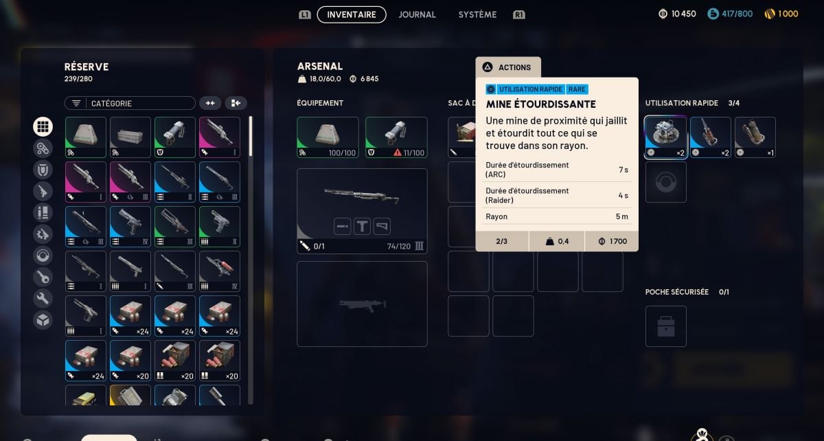L'incendiaire + gaz peuvent être craft avec l'arbre de compétences SURVIE sinon dans l'établi, concernant la mine étourdissante il faudra le schéma ( très commun ) ou la loot dans le jeu