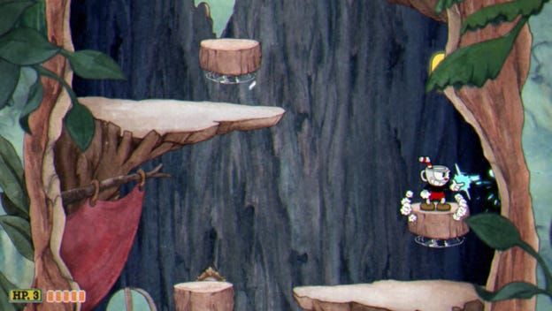 4. À la sortie du tronc elle se trouvera juste en haut donc sauter sur la feuille sauter esquive en arrière