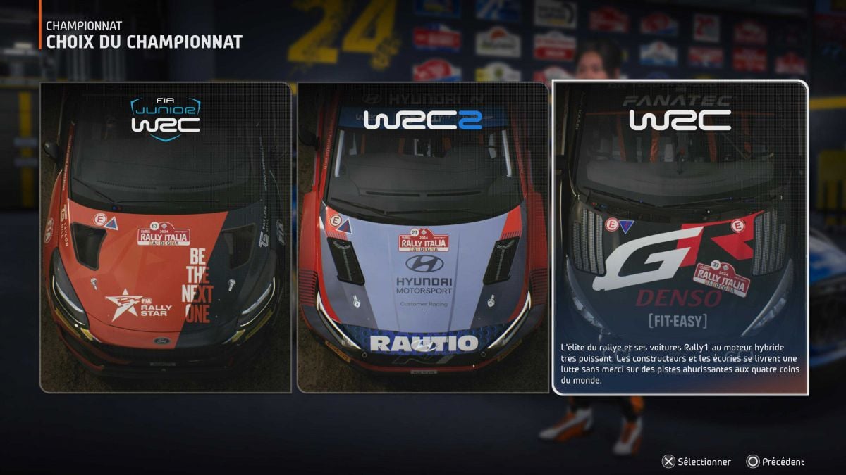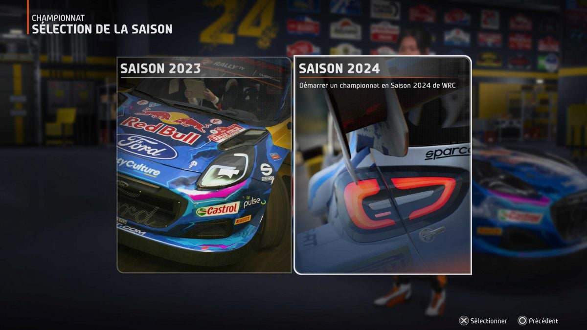 Dès que vous arrivez sur le menu du jeu, vous pouvez lancer le Championnat -> saison 24 -> WRC ( droite ) denso