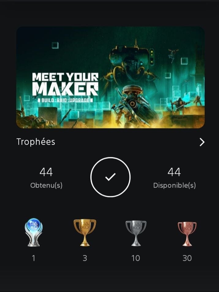 Félicitations pour ton platine, j'avance moi aussi pour le platine! Je ne croyais pas trop au jeu mais au fur et à mesure on maitrise et c'est cool.