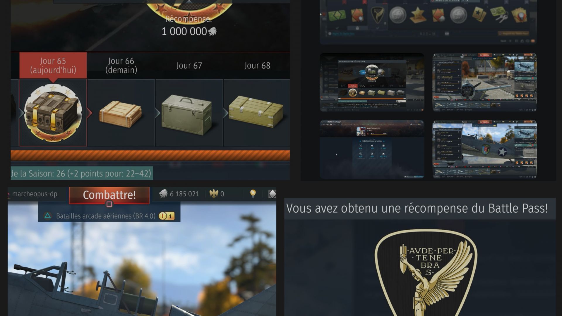 Par mes missions surtout mais aussi grace aux une ou deux fois 100 000 lions d’argent chopés chaque saison juste avec les connexions quotidiènnes , j’avais passé ce mois ci la barre des 6 millions de lions d’argent monnaie gratuite permettant d’acheter avions tanks et équipages et les améliorer