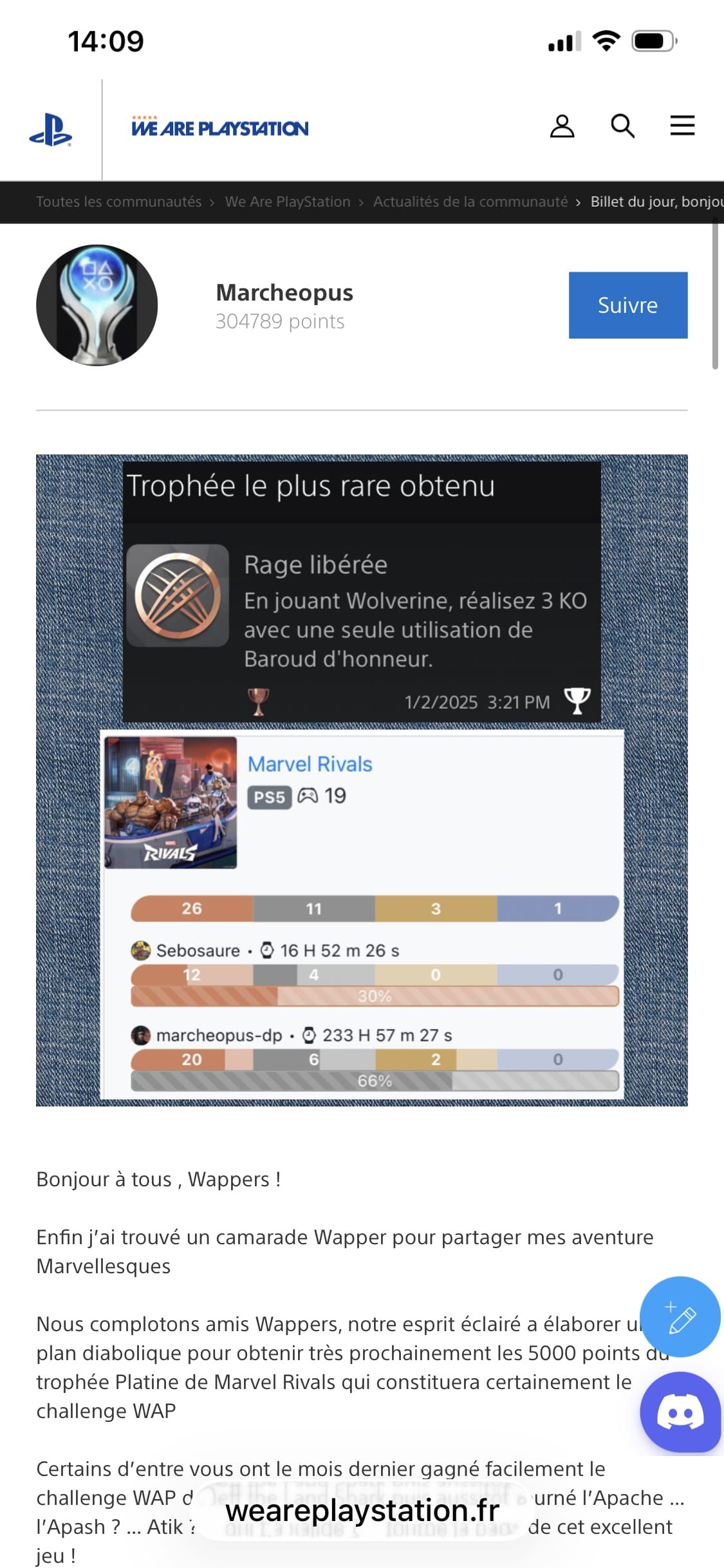 Alors chaque début de mois nous attendions de voir Marvel Rivals en challenge Platine WAP