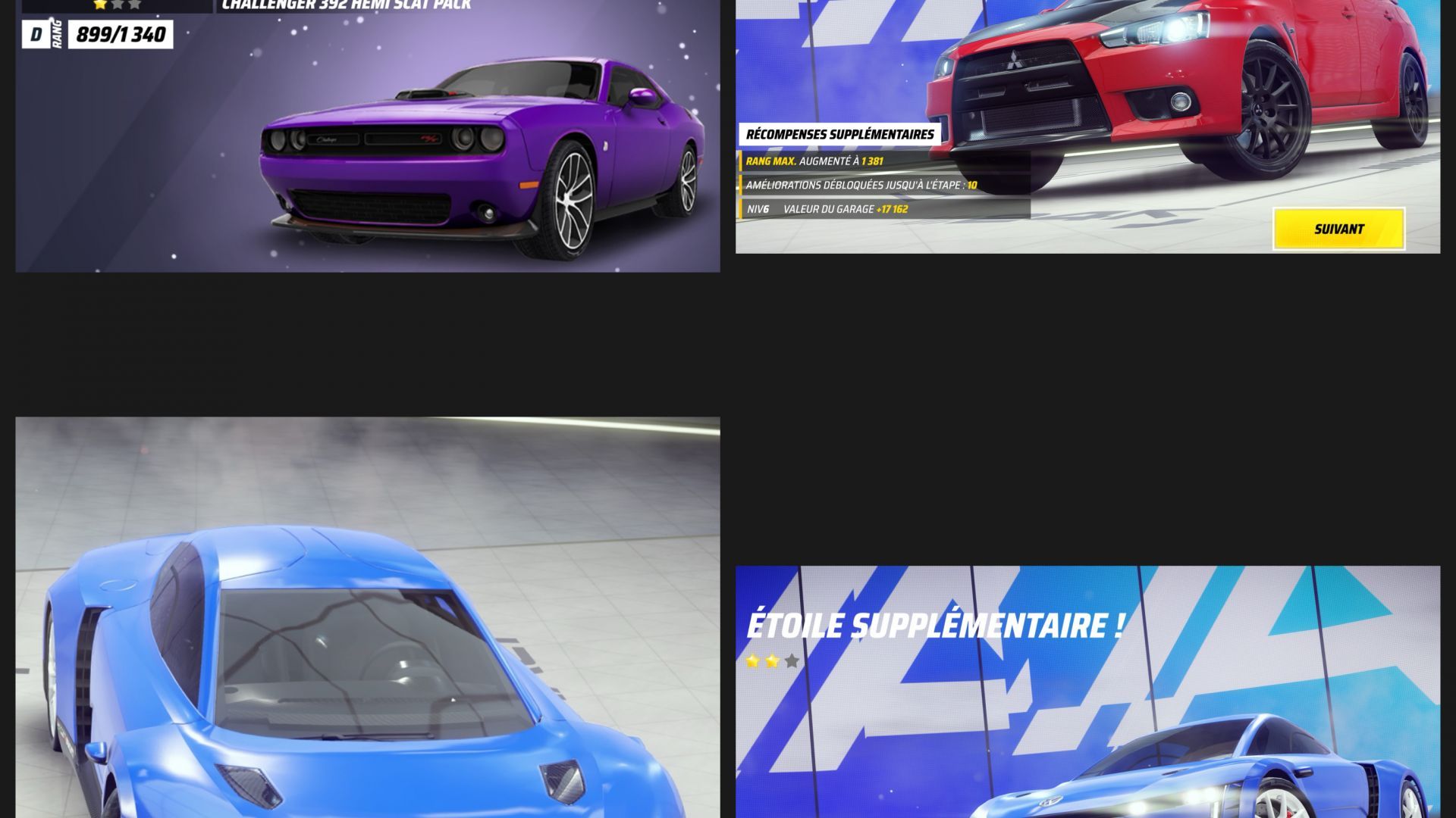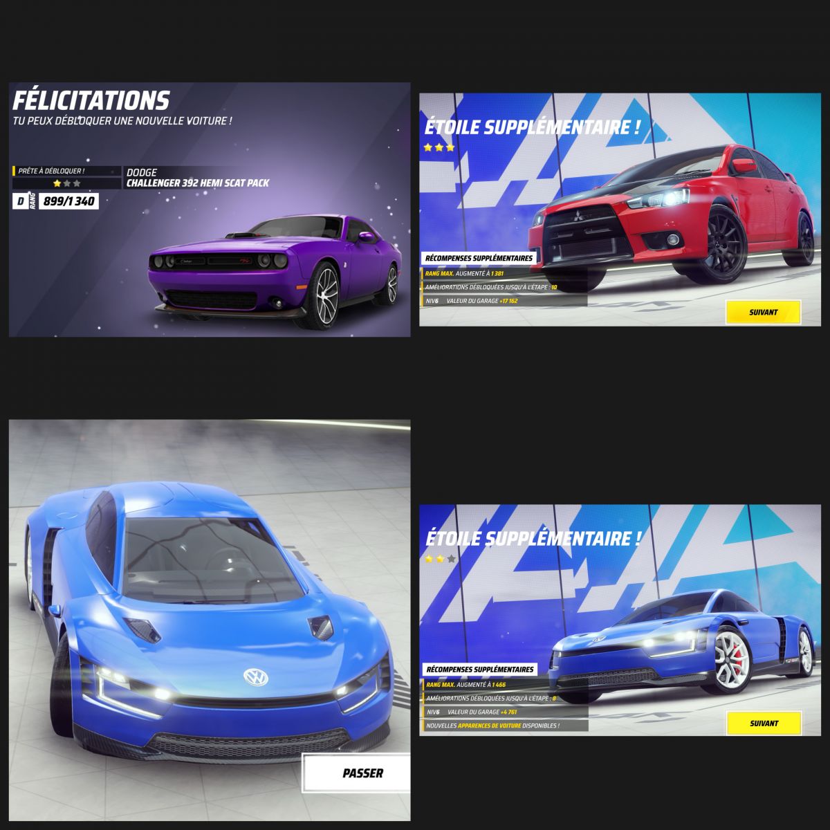 Garage bientôt niveau 7 chaque jour je débloques une à deux voitures toujours plus belle et ajoute des étoiles à deux ou trois voitures bientôt au max mais sans payer faut être actif et prioriser certains events plutôt que d’autres