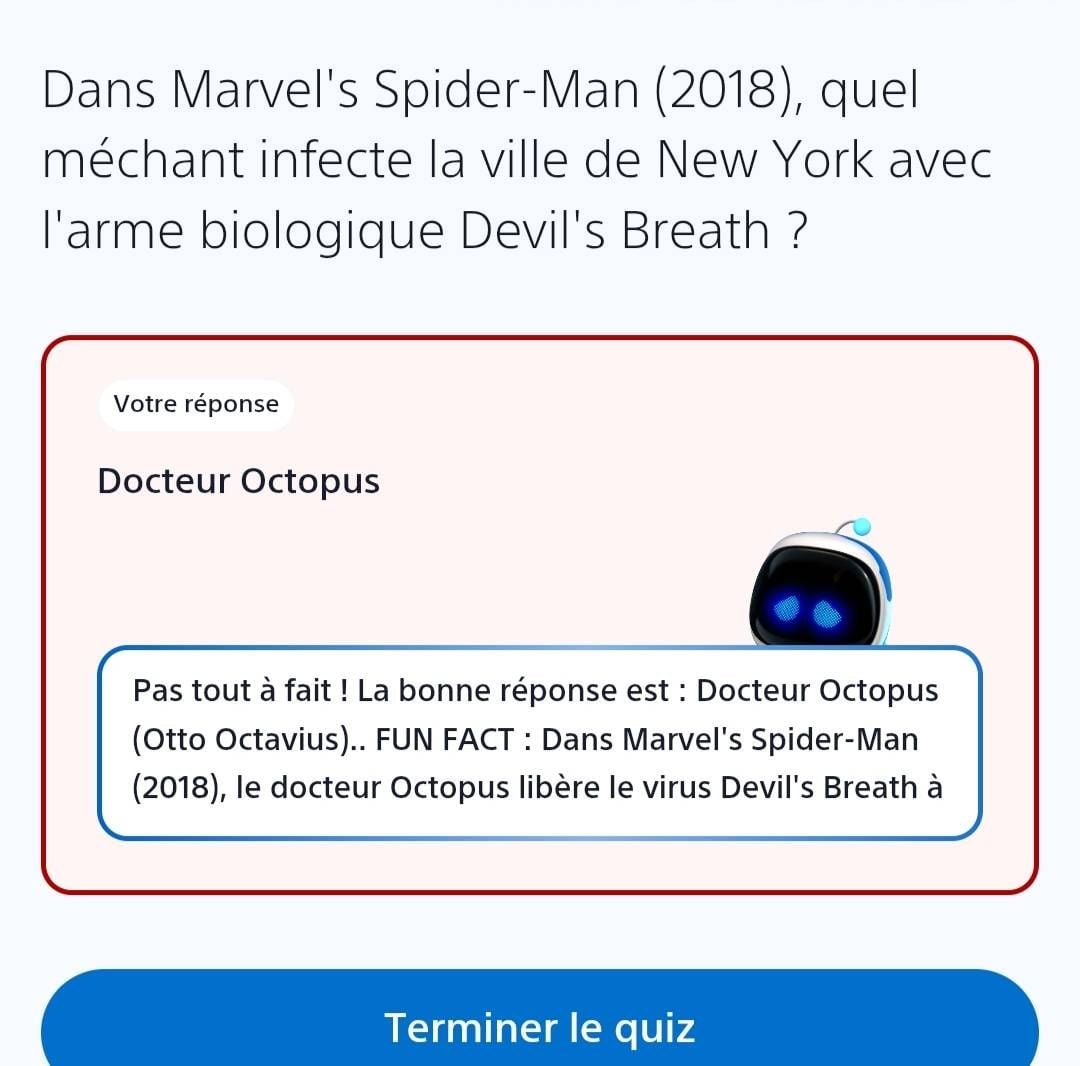 2 Dans Marvel's Spider-Man (2018), quel méchant infecte la ville de New York avec l'arme biologique Devil's Breath ?