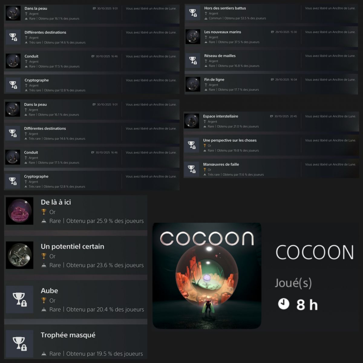 Me faudra pour le platiner d’autres runs car je viens de voir que j’ai zappé pas mal de libération d’ancêtres de lune lol