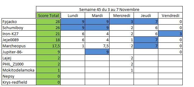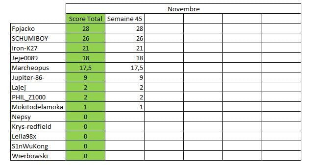 Résultat Novembre :