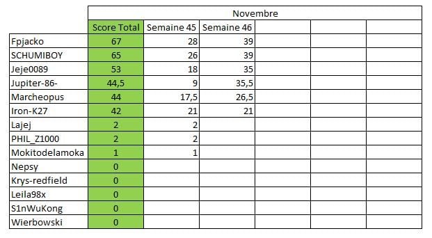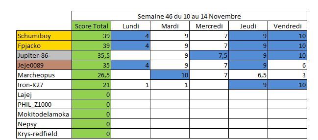 @SCHUMIBOY et @fpjacko finissent premier, je n'ai pas pu les départager sur le nombre de sans fautes, ou de cellules bleus (pour le top en réponse)... ^^