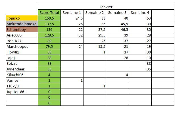 Tableau temporaire de Janvier :
