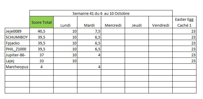 Tableau des scores (avec le Bonus du Lundi que j'avais oublié de vous indiquer hier) :