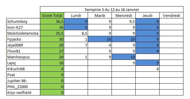 Tableau des scores :