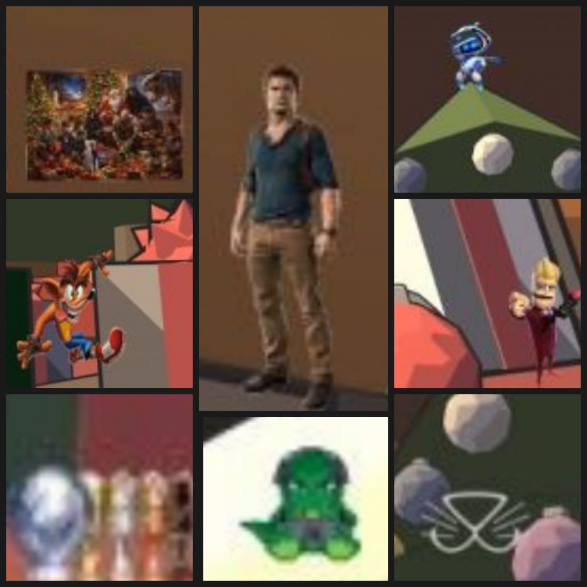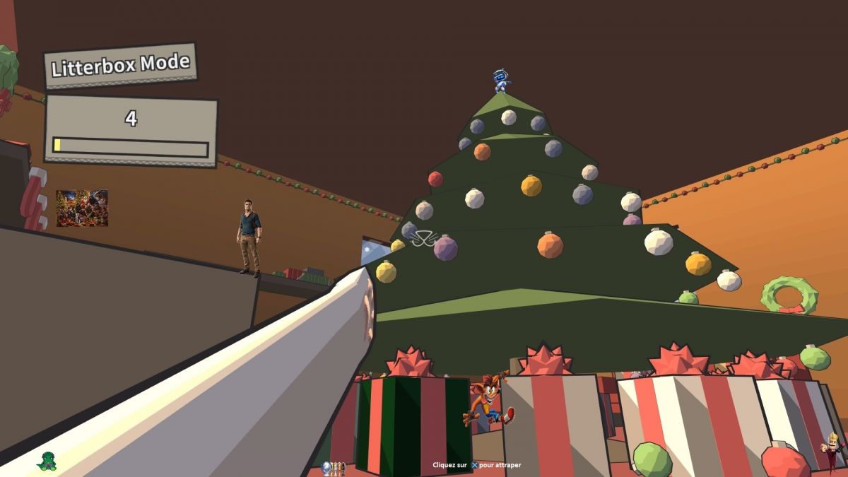 1 . Nathan Drake à gauche du sapin en hauteur sur un meuble?