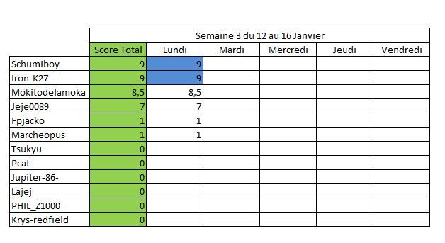 Tableau des scores :