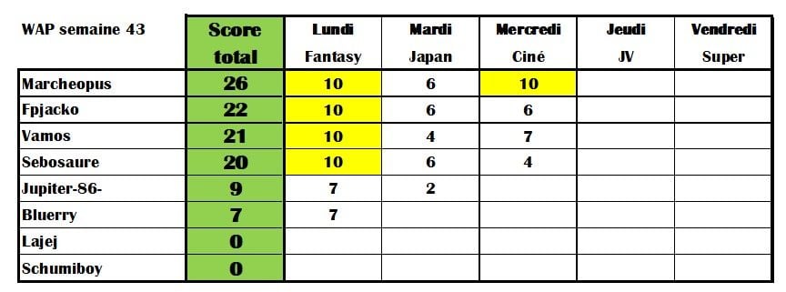 2 points par bonne réponse, + un bonus de 2 points de plus pour 4 bonnes réponses par jour, on fait les comptes en fin de semaine.