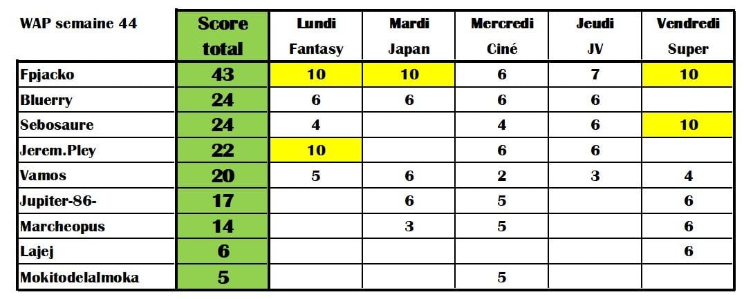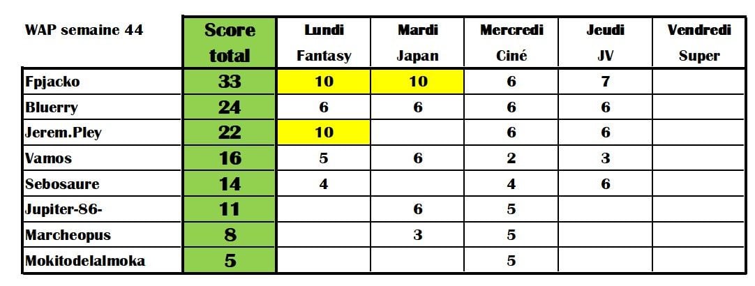 2 points par bonne réponse, + un bonus de 2 points de plus pour 4 bonnes réponses par jour, on fait les comptes en fin de semaine.