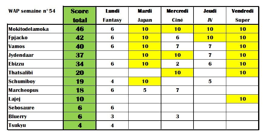 Suivi par Deadpool (Vamos) et les petits nouveaux (Ebizzu et Thasalibi) qui pour leur première semaine finissent avec de superbes scores.