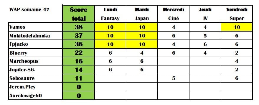 Grace aux "Alies rouges" que personne n'avait trouvé, c'est donc MOKITODELAMOKA qui est deuxième à seulement 1 point, et FPJACKO passe 3 ème à seulement 1 point lui aussi
