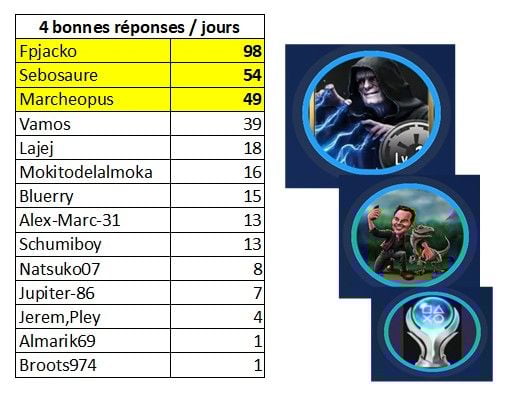 Génial toutes ces stats sacré boulot Greg c'est cool 👍 c'est vraiment top ces quizz quotidien 😉 fpjacko qui cartonne tout il est monstrueux 😆