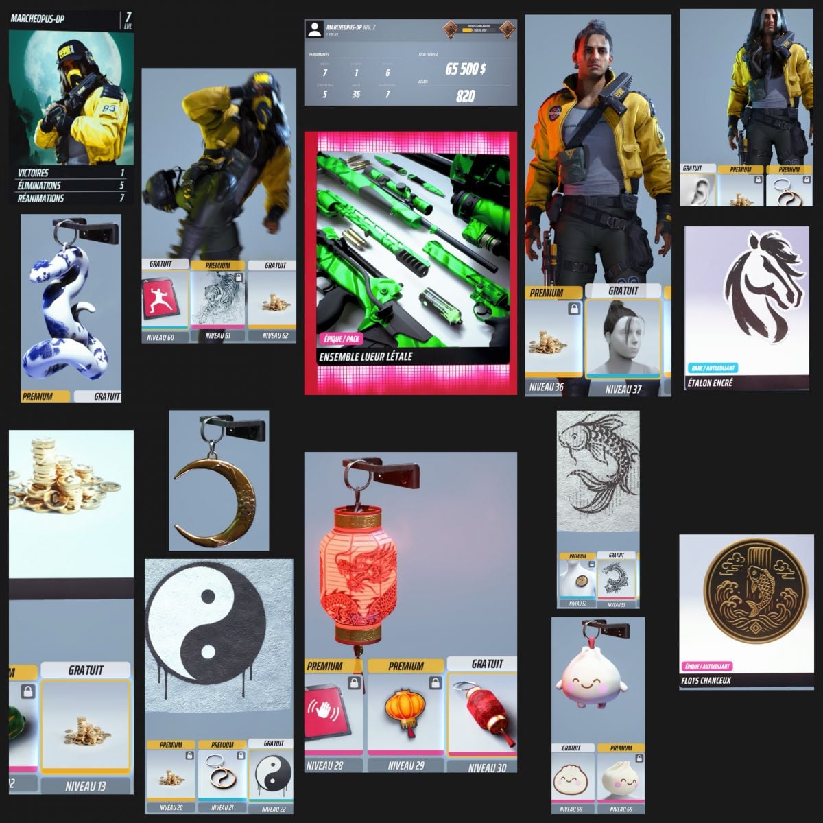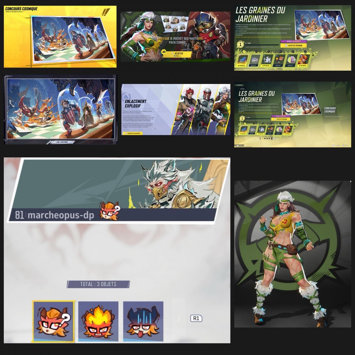 Investit les nouvelles monaies avant la fin en une super tenue psylocke , une tenue iron fist du drop et d’autres au battlepass et events et j’en ai teinté certaines