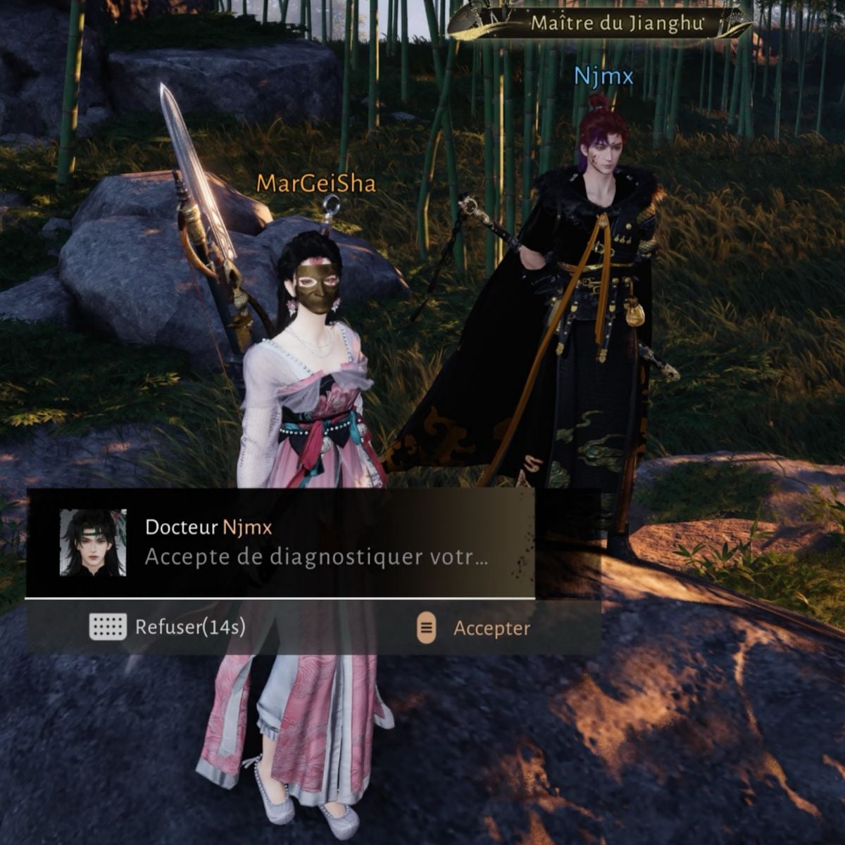 Je soignais les autres et là un membre m’a proposé de soigner mon mal de tête récurent du à un emposonnement par fleurs, sympa à lui je l’ai liké