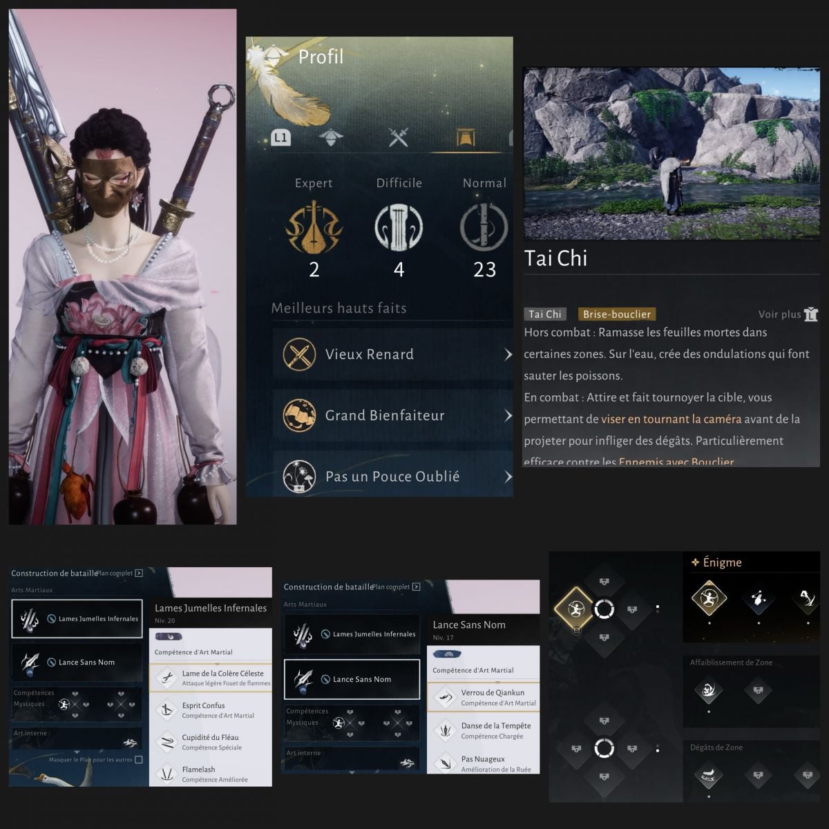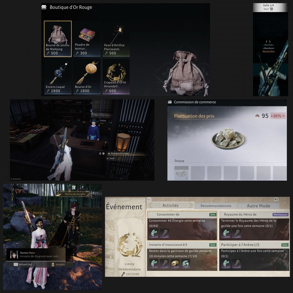 Guildes spécialisées combats pour m’y aider, étant moi même surtout perdu dans l’interface et ne sachant ni choisir techniques de tai chi ni armes à ésuiper ni comment les réparer
