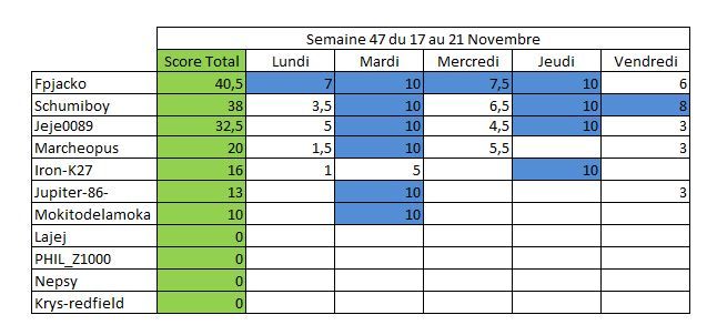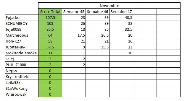 @fpjacko l'emporte de peux suivi de @SCHUMIBOY qui, même si il avait réussi à me redonner la liste complète des GTA, n'aurait eu que 40 pts.