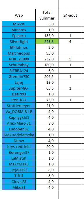 4 points pour une bonne réponse + 1 pts pour le plus rapide à trouver la bonne réponse.