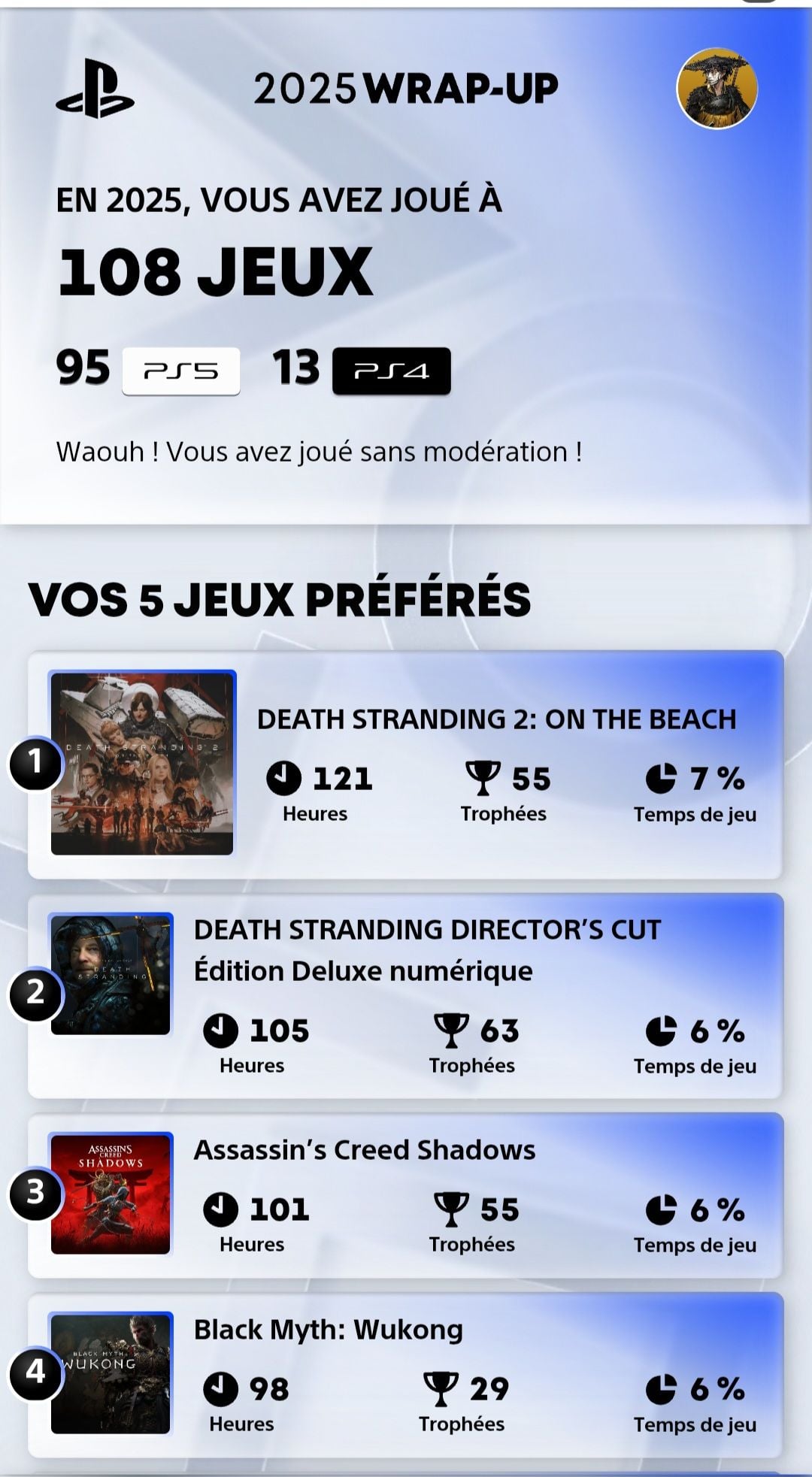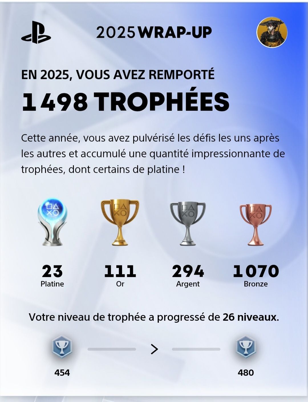C'est une année modeste sur laquelle j'ai pu obtenir 23 trophées platine.
