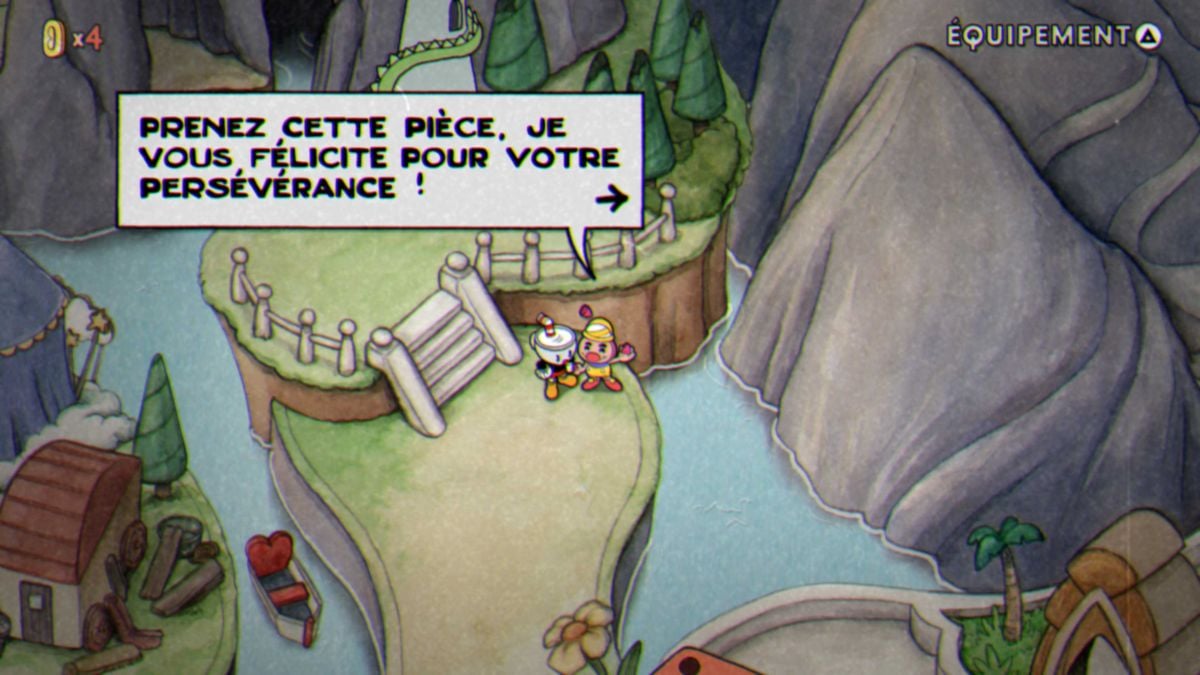 4. La PNJ Donuts juste après l'ouverture du passage en battant le boss Baronne Von Berlingot juste après lui avoir parlé passer derrière le nichoir et traverser la montagne par derrière pour la pièce en lui reparle (trophy raccourci)