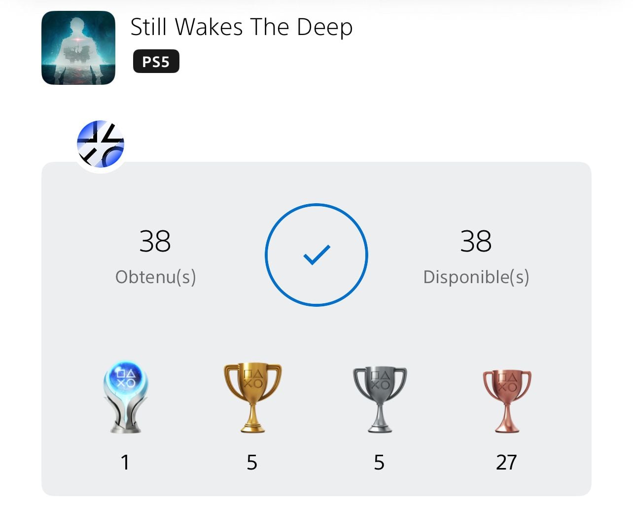 Still Wakes The Deep vient d’arriver sur le PS+ et le trophée platine n’avait pas l’air très compliqué en regardant les grandes lignes du guide. Je me suis donc lancé.