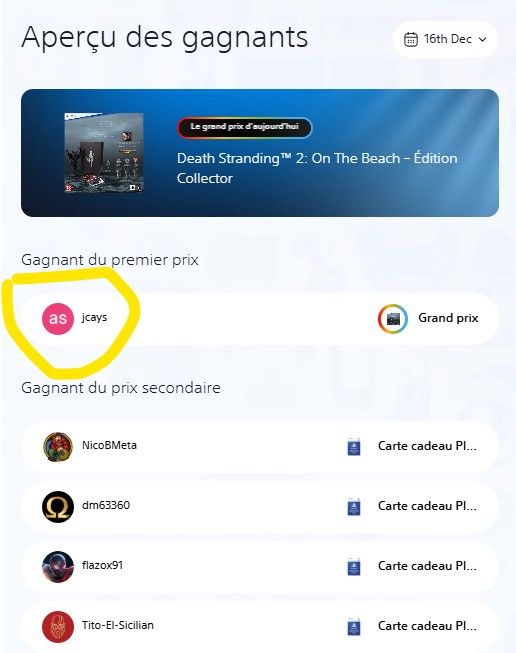 Très discret sur WAP, c'est mon collègue de boulot Jcays (Jerececay sur WAP) qui a remporté le gros lot d'hier (le collector de Death Stranding 2)